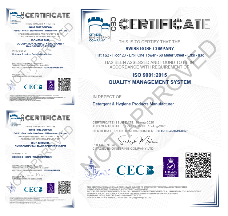 شركة سويس روز هي أكبر منتج للمنظفات ومنتجات النظافة في العراق، تأسست عام 2019.